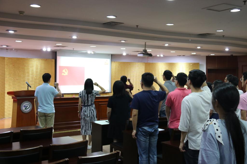 表彰和献礼环节过后,全体与会人员一同学习了习近平总书记在“不忘初心,牢记使命”主题教育工作会议上的讲话精神,并开展主题研讨。吴震宇从高校教师的“三个职能”切入,结合自己多年来的科研工作经历,谈新时代党员教师们的初心与担当,他认为高校教师要认准方向,务实工作,在所处领域和行业内作出应有的贡献。辅导员林国庆讲述了自己从学生到老师的成长经历,提出青年思政工作者应当无悔奉献、无悔青春,成为学生成长成才的引路人。学生党员唐涛认为,研究生党员的初心是要明白学习与成长的意义,明白学术的可贵和成果的可敬,做到诚信做人,踏实做事。