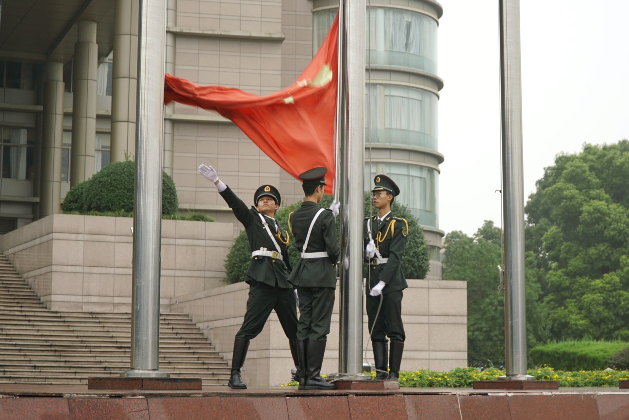 零星的小雨中,仪式正式开始。伴着激昂的《义勇军进行曲》,鲜艳的五星红旗缓缓上升,又一次飘扬在浙理上空。升旗仪式结束后,新党员进行庄严神圣的入党宣誓,由苏丽辉领誓。随后,党员代表们为各位新发展党员佩戴党徽。党的生日,少不了一首祝福的歌。同学们用一首《我爱你,中国》为党和祖国献上祝福。