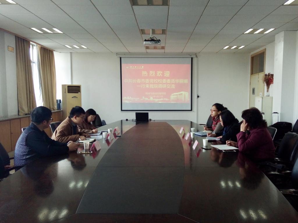 1月21日上午,中共长春市委党校校委委员华丽娜、资政研究部教授赵延芳、哲学教研部讲师李婷一行三人来美女直播调研高校开展教育实践活动及大学生践行社会主义核心价值观的情况。学院党委组织员王淯霄,团委副书记、学生会秘书长贺芳琪以及机械设计制造系党支部书记、系副主任周健代表学院对华丽娜校委一行表示热烈欢迎,并在学院322会议室与他们进行座谈交流。座谈会由周健主持。