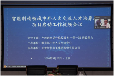 5月25日下午,由教育部中外人文交流中心主办、亚龙智能装备集团股份有限公司承办,教育部“智能制造领域中外人文交流人才培养基地项目”启动工作视频会议成功举行。