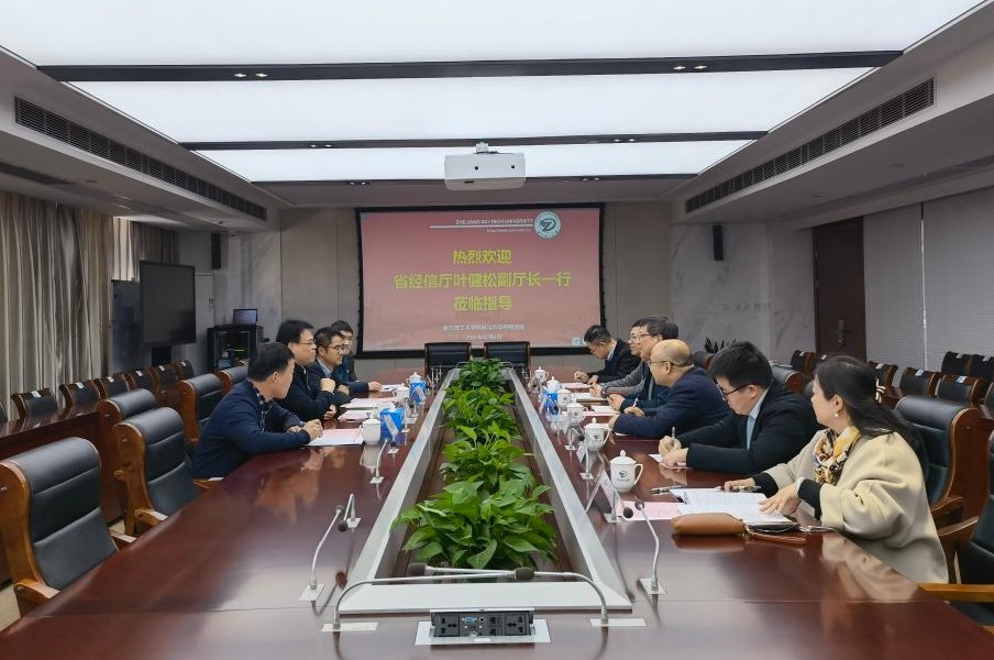 12月6日,浙江省经信厅党组成员、副厅长叶健松率装备处一行到我校调研。校党委委员、副校长陈文华全程接待,科技处、机械与自动控制学院相关负责人陪同接待。