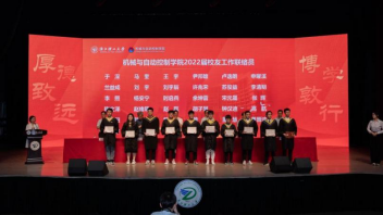 优秀毕业生的获奖名单,学院领导为获奖学生颁发荣誉证书。苏志俭宣读了机械与自动控制学院2022届校友工作联络员名单,学院领导为32名校友工作联络员颁发聘书。他们将作为毕业生和母校之间的桥梁纽带,积极发挥校友作用,关注母校发展,促进学校与校友之间的资源共享、互帮互助及共同发展。