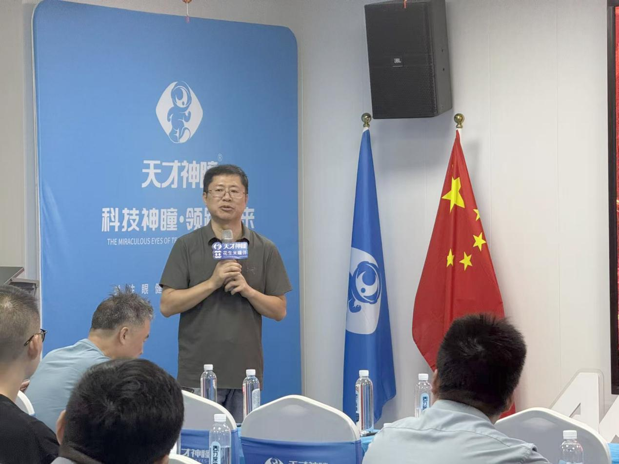 随后,走访队伍来到杭州天才神瞳实业有限公司。公司CEO、学院94级机电一体化专业校友傅建兵热情接待,他向校友们详细介绍了公司的发展历程以及在工业质检、智慧医疗、智慧城市等领域的核心技术和市场布局,重点展示了公司自主研发的智能动态变焦技术并现场演示了公司研发的最新产品。傅建兵表示,母校给予的不仅是专业知识,更是“踏实做事、敢闯敢试”的精神。在场校友对傅建兵的创新成果表示高度肯定,大家一致认为,近视防控是关乎下一代健康的民生工程,天才神瞳的技术突破市场前景广阔,为行业树立了标杆。在场校友也围绕行业趋势、技术应用等话题展开热烈讨论,现场氛围活跃。